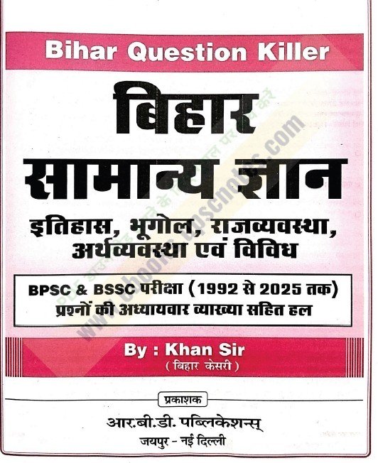 बिहार के विद्यार्थियों के लिए Khan Global Studies और R.B.D. Publications द्वारा प्रकाशित यह पुस्तक “ Bihar Question Killer Samanya Gyan Book PDF 2025 by Khan Sir ” प्रतियोगी परीक्षाओं की तैयारी के लिए एक उत्कृष्ट गाइड है। प्रसिद्ध शिक्षक खान सर (बिहार केसरी) द्वारा तैयार की गई यह पुस्तक न केवल BPSC और BSSC परीक्षाओं के लिए बल्कि अन्य सभी बिहार राज्य स्तरीय परीक्षाओं के लिए भी अत्यंत उपयोगी है।