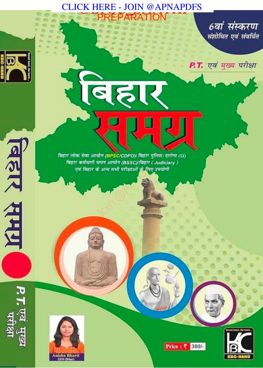 Bihar Samagra 6th Edition Book Pdf Download : बिहार राज्य से जुड़ी प्रतियोगी परीक्षाओं में सफलता पाने के लिए केवल सामान्य अध्ययन की तैयारी पर्याप्त नहीं होती, बल्कि बिहार-विशेष ज्ञान (Bihar Specific GK) भी उतना ही महत्वपूर्ण होता है। इसी आवश्यकता को ध्यान में रखते हुए तैयार की गई पुस्तक है — “बिहार समग्र”।