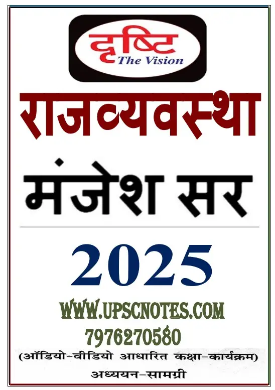 भारतीय राजव्यवस्था (Indian Polity) मंजेश सर Notes 2025 – Drishti IAS सिविल सेवा परीक्षाओं का एक अत्यंत महत्वपूर्ण विषय है। यह न केवल संविधान की संरचना और प्रशासनिक ढांचे को समझने में मदद करता है, बल्कि शासन प्रणाली और नागरिक अधिकारों की गहराई तक जानकारी भी प्रदान करता है। इसी उद्देश्य से, दृष्टि IAS के वरिष्ठ शिक्षक मंजेश सर द्वारा तैयार किए गए राजव्यवस्था Notes 2025 विद्यार्थियों के बीच अत्यंत लोकप्रिय हैं।