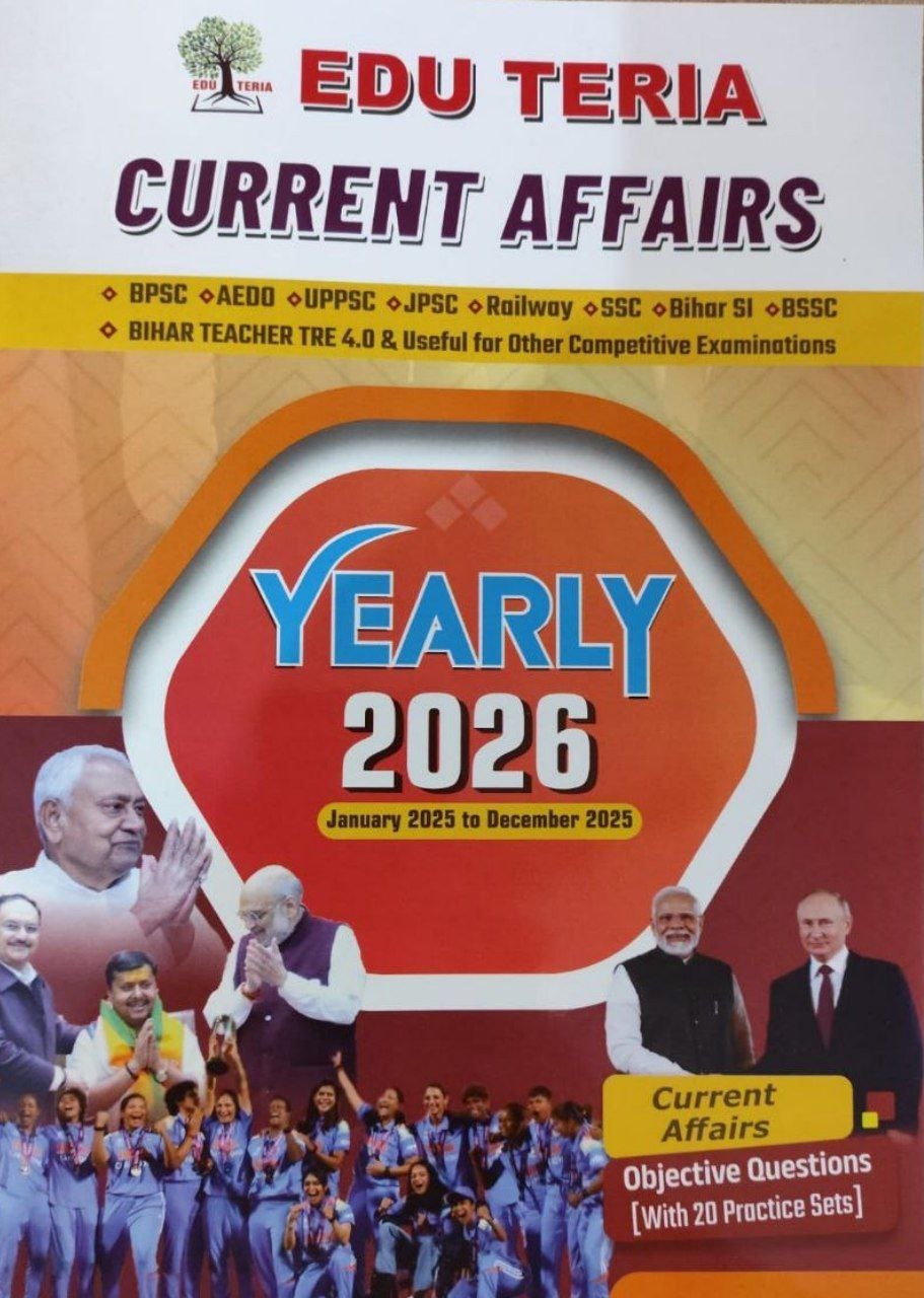 EDU TERIA Current Affairs Yearly 2026 is a comprehensive annual current affairs book that consolidates one full year of national and international events in a concise and easy-to-understand format. It includes objective-type questions along with 20 practice sets, making it ideal for both learning and revision.