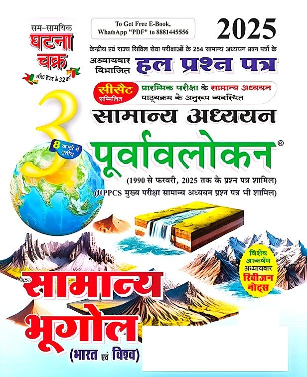 प्रतियोगी परीक्षाओं की तैयारी में भूगोल (Geography) एक ऐसा विषय है जो न केवल तथ्यात्मक जानकारी देता है बल्कि दुनिया और भारत की प्राकृतिक, सामाजिक व आर्थिक संरचना को समझने में भी मदद करता है। Ghatna Chakra Indian & World Geography Book Pdf 2025 Download इस विषय की पूरी तैयारी के लिए एक उत्कृष्ट और अद्यतन पुस्तक है, जिसमें 1990 से फरवरी 2025 तक के प्रश्न-पत्रों का विश्लेषण और समाधान उपलब्ध कराया गया है।
