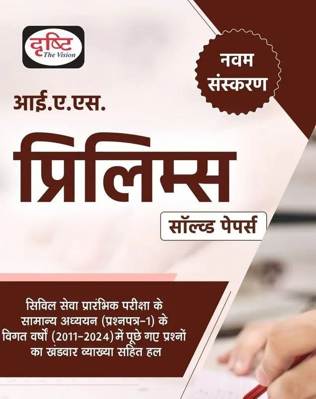 “दृष्टि आई.ए.एस. प्रिलिम्स सॉल्व्ड पेपर्स (2011–2024) 9वां संस्करण – Drishti The Vision द्वारा प्रकाशित यह पुस्तक सिविल सेवा प्रारंभिक परीक्षा (General Studies Paper-1) के लिए एक complete solution guide है।