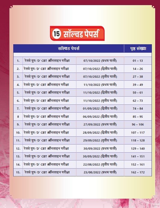 नवीनतम सिलेबस और पैटर्न पर आधारित – यह किताब पूरी तरह से रेलवे ग्रुप-D परीक्षा के लेटेस्ट पैटर्न को ध्यान में रखकर बनाई गई है।