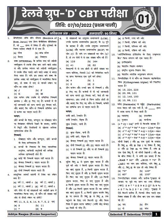 इस बुक को तैयार किया है आदित्य रंजन सर (Excise Inspector) ने। उनका अनुभव और परीक्षा में सफलता छात्रों को सही दिशा देने में मदद करता है।