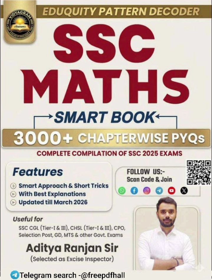 SSC Maths Smart Book by Aditya Ranjan 3000+ Chapterwise PYQs Pdf Download : अगर आप SSC CGL, CHSL, MTS, CPO या अन्य सरकारी परीक्षाओं की तैयारी कर रहे हैं, तो Maths एक ऐसा विषय है जिसमें सही practice और short tricks से आप बहुत अच्छा score कर सकते हैं। इसी को ध्यान में रखते हुए Aditya Ranjan Sir की SSC Maths Smart Book एक बेहतरीन resource बनकर सामने आती है।