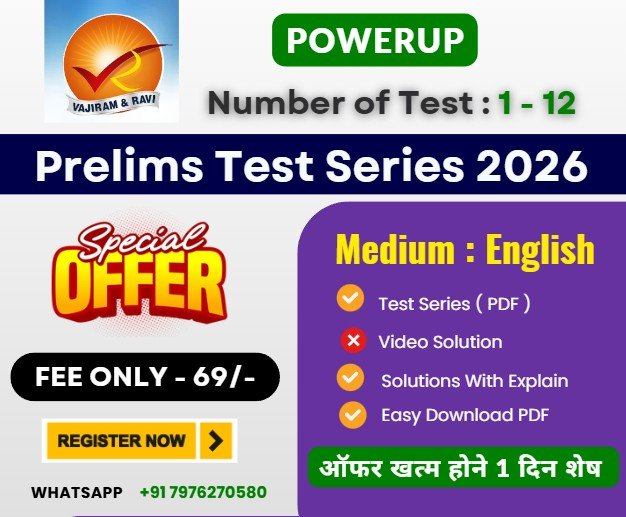 Vajiram & Ravi UPSC Prelims Test Series 2026 With Solution : If you are preparing for UPSC Prelims 2026, then the Vajiram & Ravi PowerUp Test Series is the perfect opportunity to evaluate your preparation level. This test series is specially designed for serious aspirants who want real exam-like practice with expert-level questions and solutions.